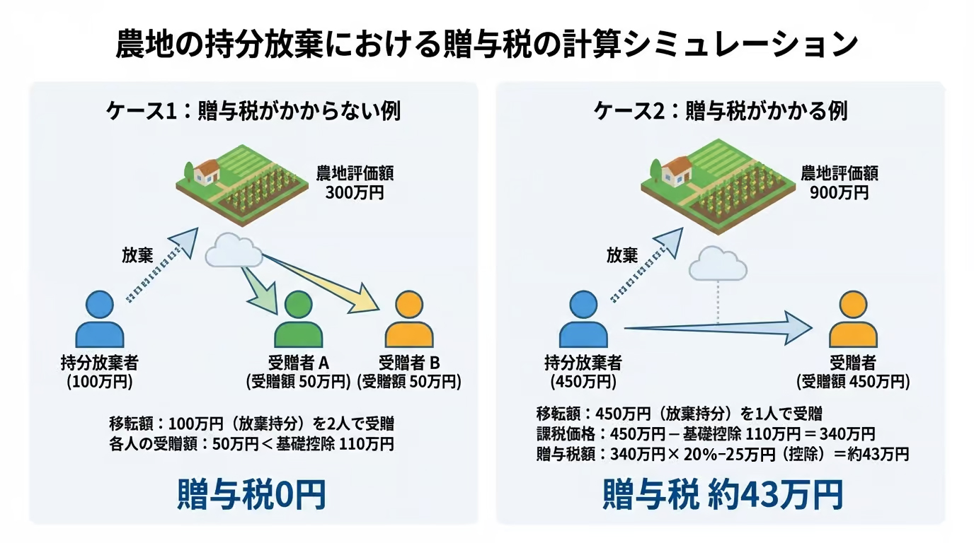 | 持分放棄 | 農地法の許可が不要 | もらう側に贈与税・不動産取得税がかかる可能性がある | 不要 |