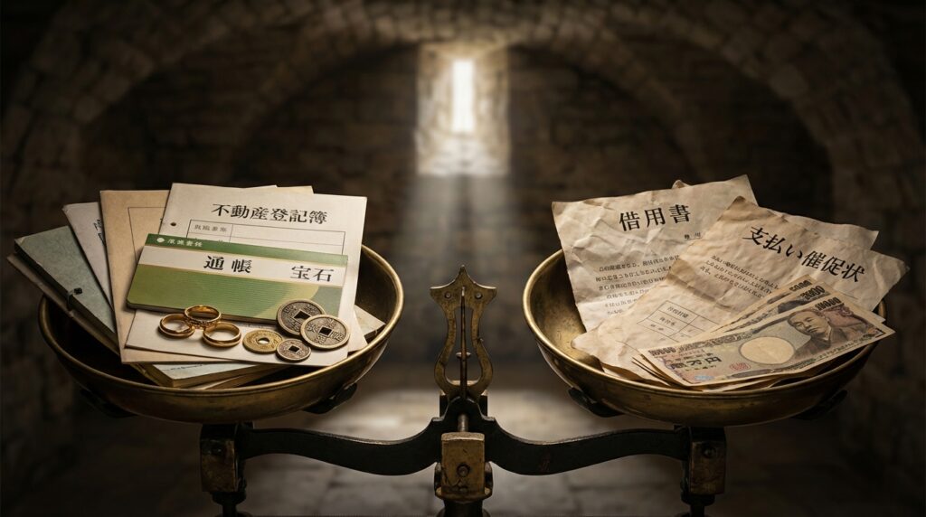 民法第896条では、「相続人は、相続開始の時から、被相続人の財産に属した一切の権利義務を承継する」と定められています。つまり、亡くなった方(被相続人)が持っていた財産的な権利(プラスの財産)も義務(マイナスの財産)も、原則としてすべてが相続の対象となるのです。